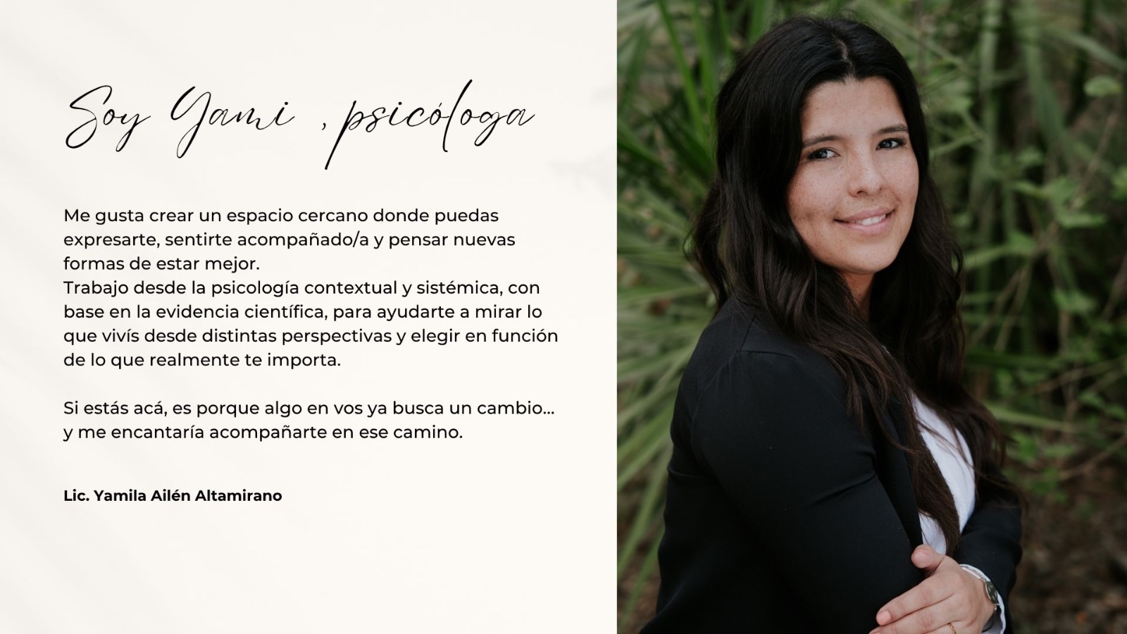 Ir a terapia con Yami fue un gran paso para mí. Ella me brindó un espacio seguro, sin juicios, donde me siento escuchada y cuidada. Con paciencia acompañó cada etapa de mi proceso dándome el apoyo y la confianza para crecer personalmente. Me dio herramientas que me ayudaron a conocerme, quererme y aprender a cuidarme de una manera que antes no podía. Gracias 🙌🏻
